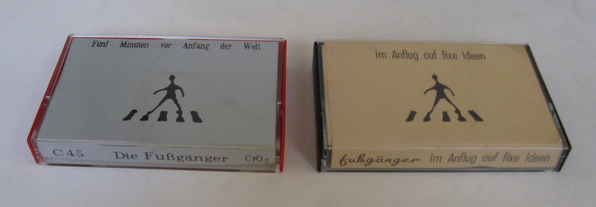 1988 arbeitete ich zusammen mit dem Filmmusikkomponisten Wolfgang Hamm an der Stummfilmmusik Les Vampires (12 Folgen, 6 ½ Stunden Musik). Dabei entstand die Idee zu dem Projekt Die Fußgänger. Ich komponierte einige Songs, schrieb dazu die Texte und suchte mir Musiker, mit denen ich diese Songs aufnehmen konnte. Es entstanden zwei legendäre Musikkassetten: Fünf Minuten vor Anfang der Welt (1988) und Im Anflug auf Fixe Ideen (1989).